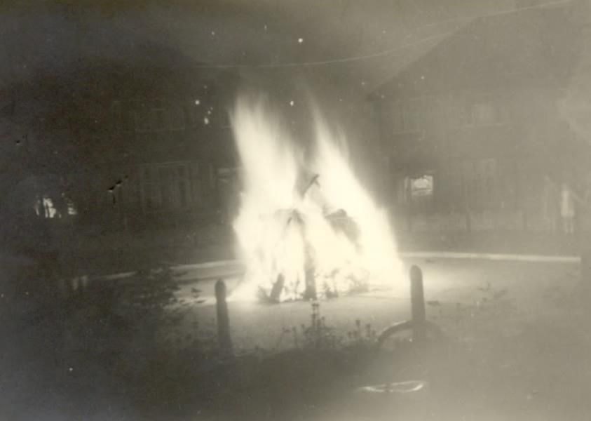 Harmondsworth Parish Church was decorated by Mr Bateman and a loudspeaker erected in the belfry so that the service that was held in the evening could be broadcast to the whole village. The evening street parties and bonfires drew large crowds of young and old and the singing and dancing continued far into the night.